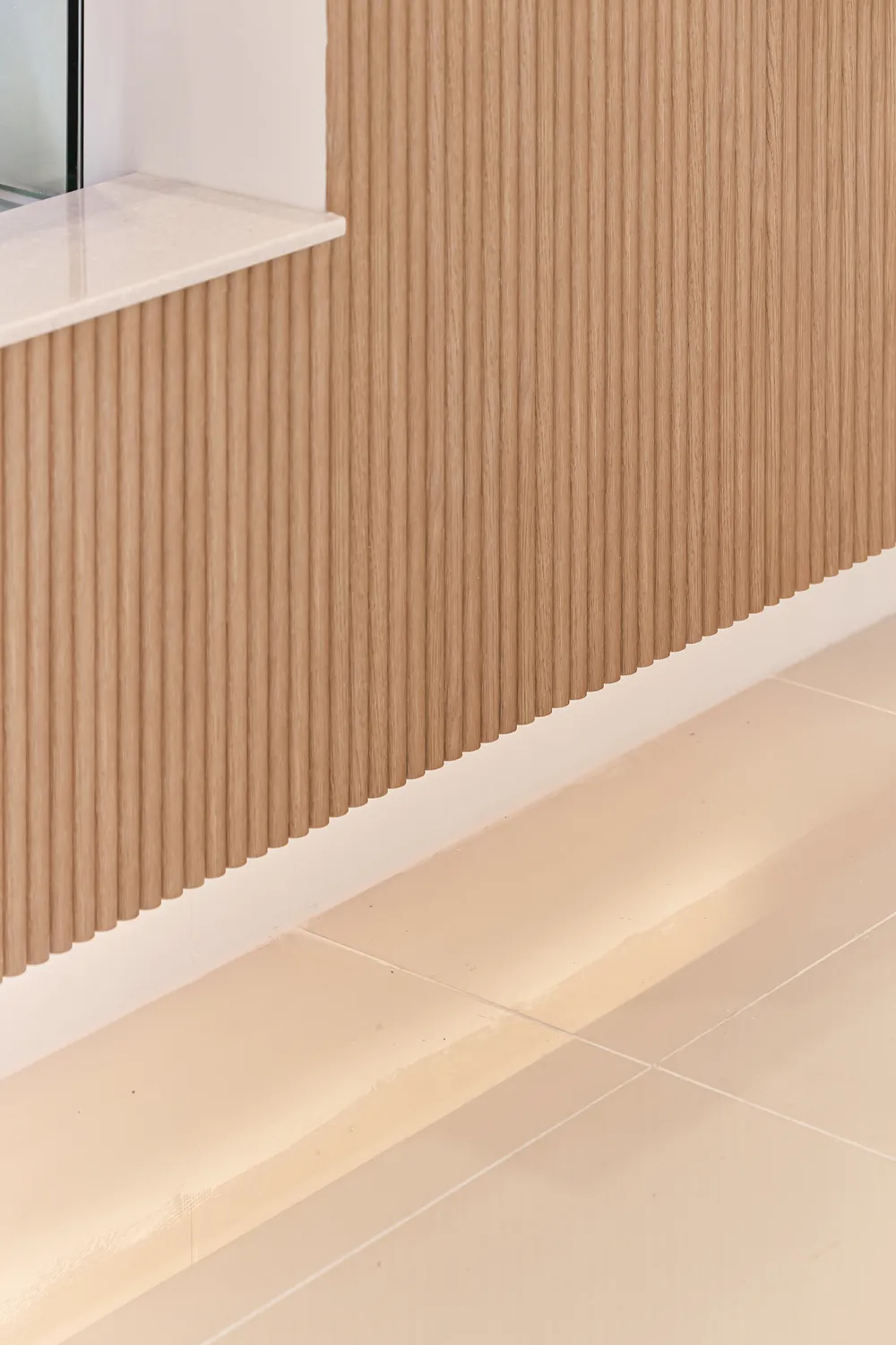 따듯한느낌에 전구색조명과 어울리게 우드 템바보드로 마감하고 하부와 벽면은 간접조명으로 포인트를 주었습니다. 카운터위치와 인터넷선 DP냉장고 위치까지 협의후 고객님의 최선의 동선에 맞추어 시공하였습니다.