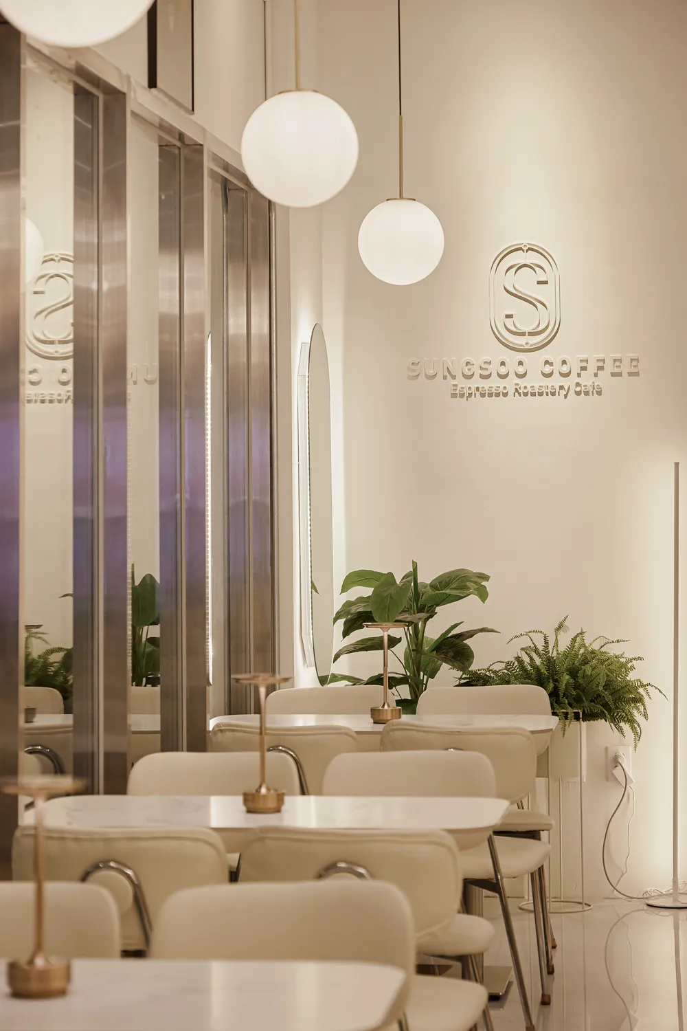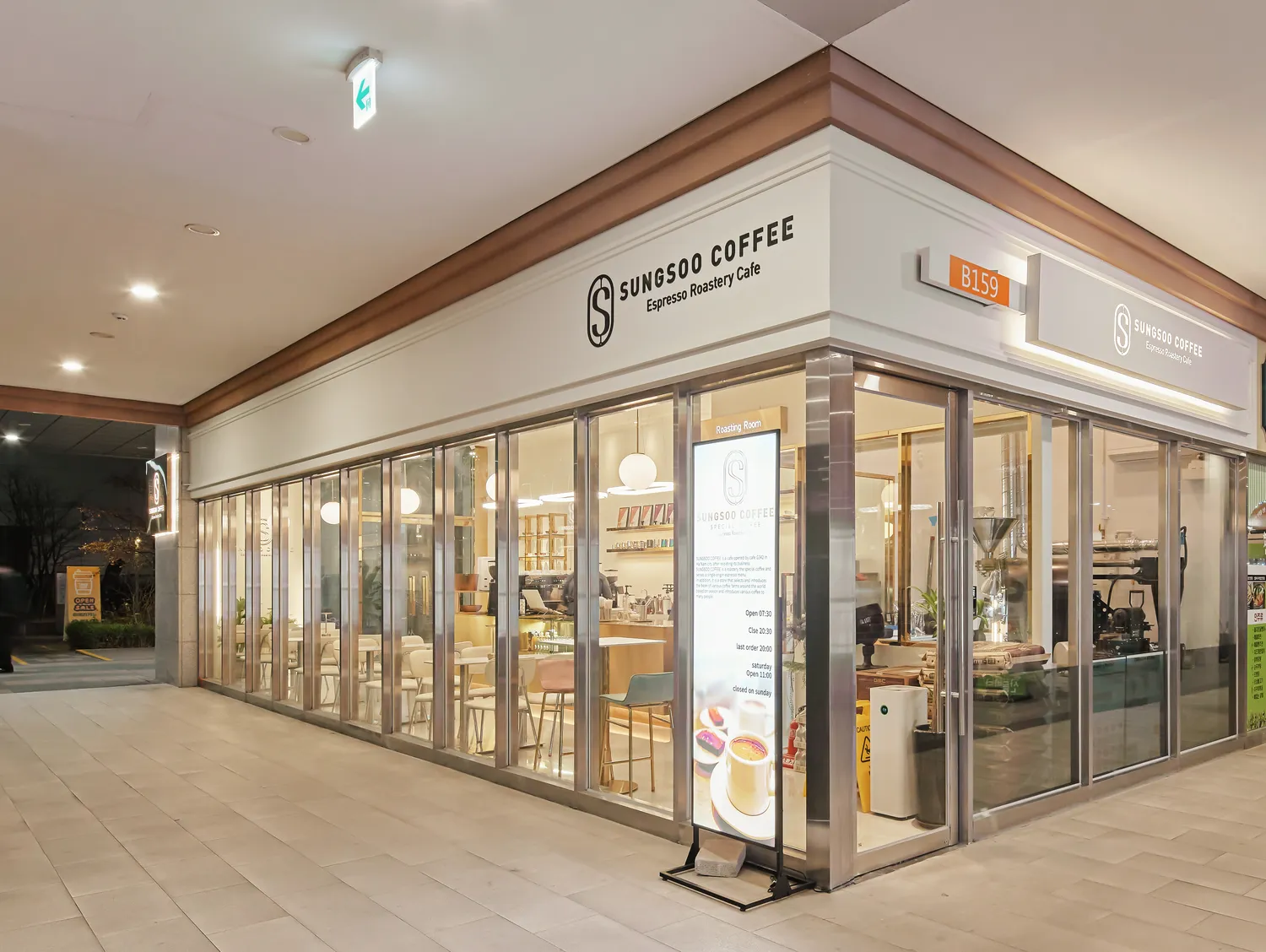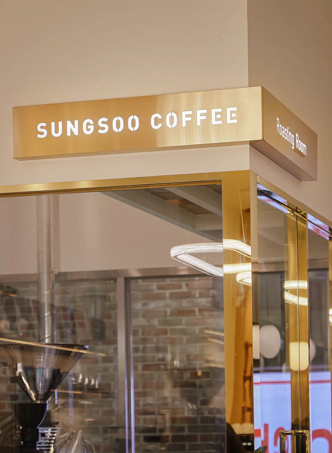 컨셉을 골드스텐으로 잡았는데 입구 창틀과 문이 은색 스텐으로 되어있어 모두 철거하고 골드스텐 틀로 모두 교체했습니다. 간판 컨셉까지 골드스텐이라 이번현장은 간판까지 같이 진행해드렸습니다. 간판은 글자와 로고를 레이저타공해서 골드스텐 판 안에서 빛이나오는 디자인으로 시공해드렸습니다. 내부 스카시와 로스팅실 실내간판도 같은 컨셉으로 통일감있게 진행했습니다.